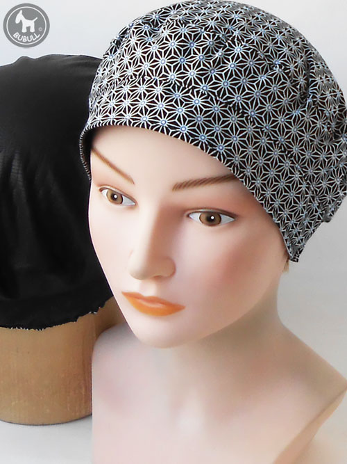 Béret réversible noir blanc bleu