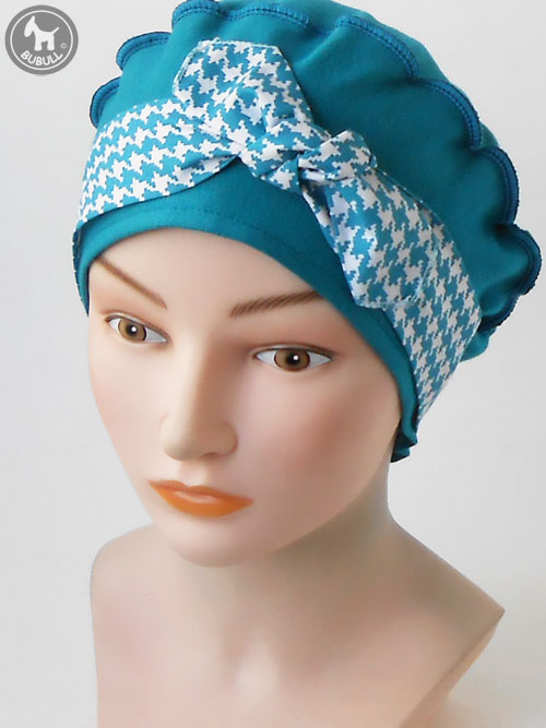 Béret turban bleu canard