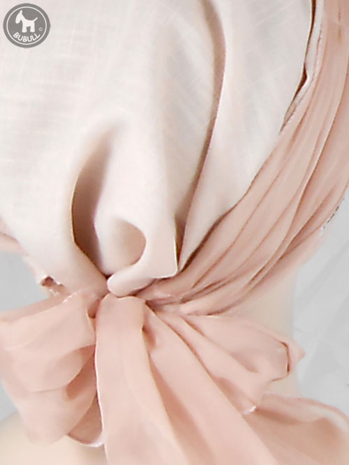 Modèle rose poudré avec un voile vieux rose.