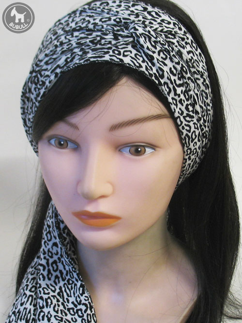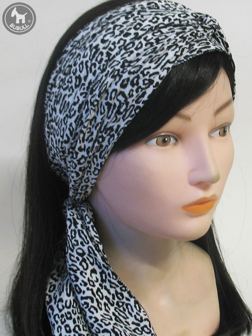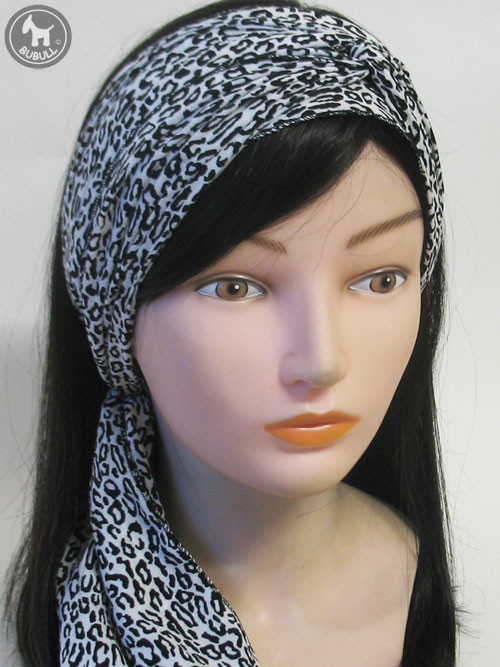 Turban blanc et noir en voile de coton